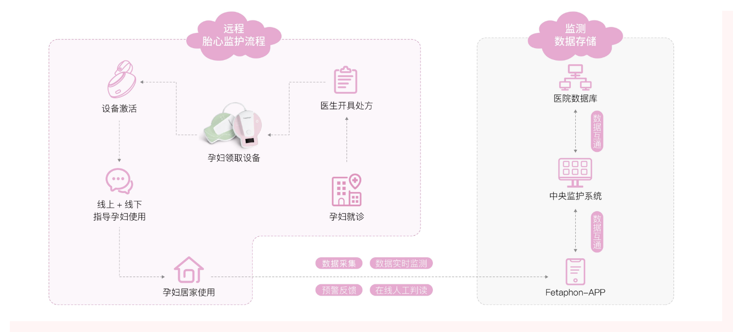 远程胎心监护是基于互联网技术的远程监测问诊平台,能够让孕妈在院外居家环境随时进行胎心监护,了解胎儿宫内状态,是对院内胎心监护的院外补充。